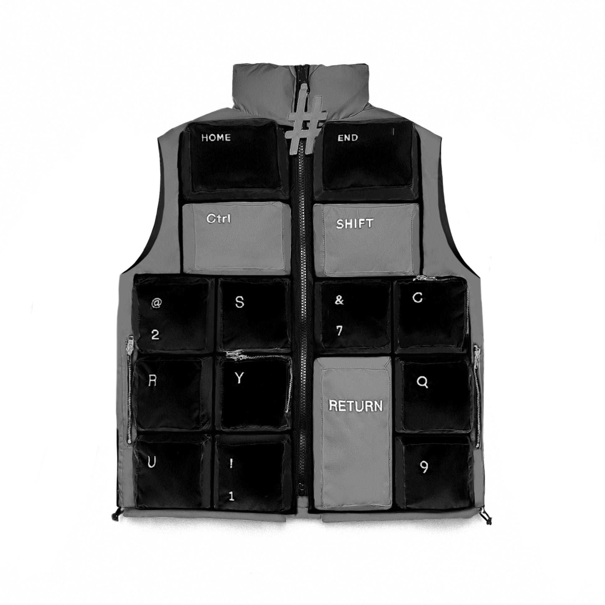 Our signature black and grey keyboard jacket is a work of art in itself. The jacket is constructed from 54 individually placed 3D padded keys.