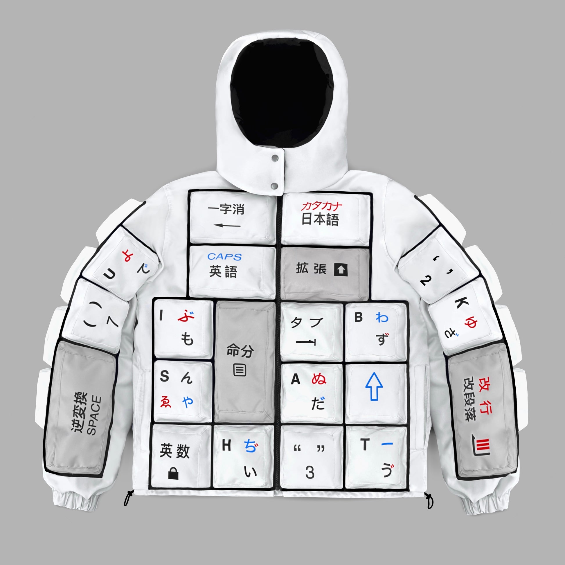 Our newest version of the keyboard jacket comes in White and Grey and features a Japanese keyboard design. The jacket is constructed from 54 individually placed 3D padded keys.